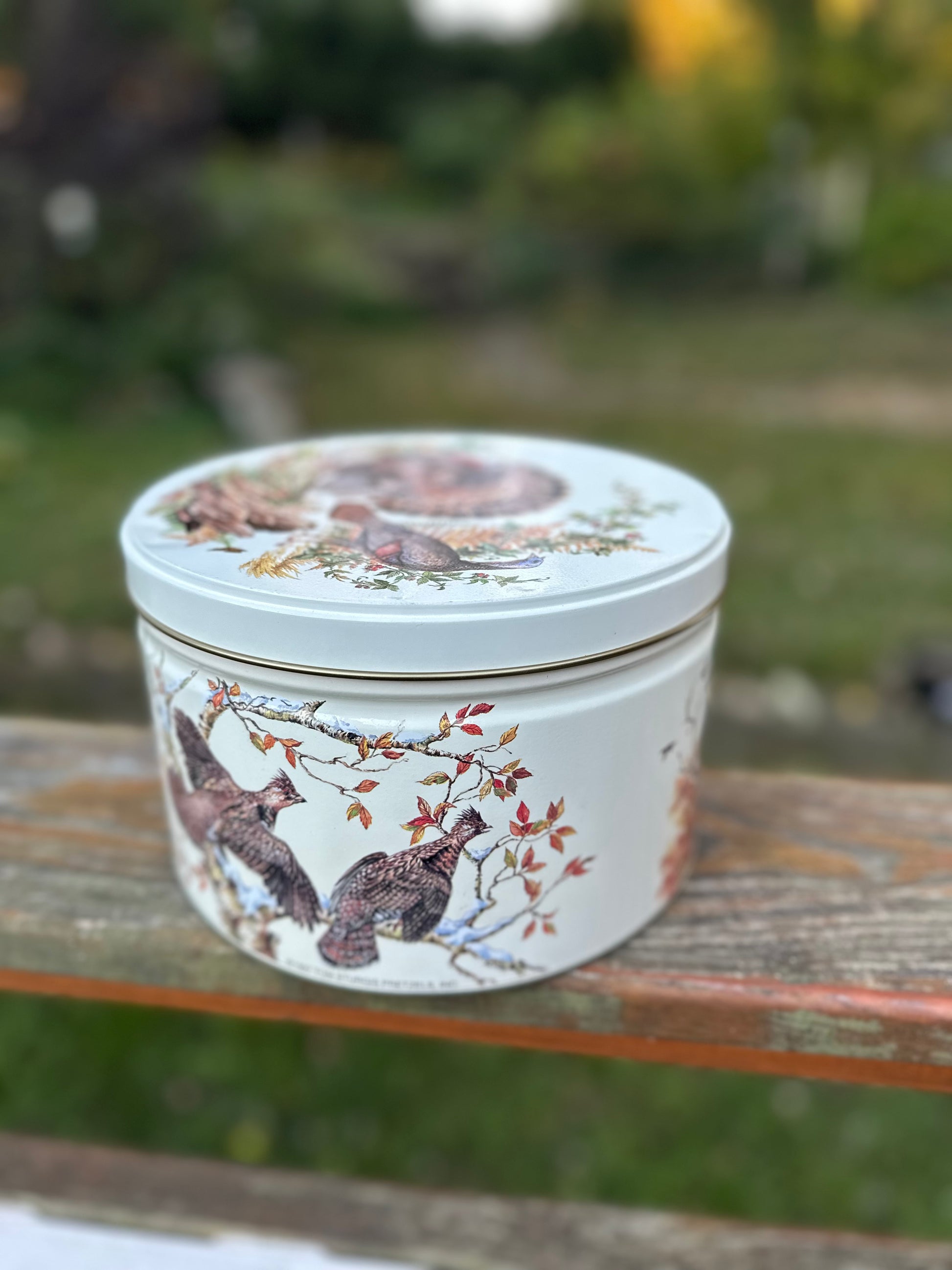 Such a unique piece! This Tom Sturgis pretzel tin features a design by Churchill titled “Thanksgiving Multicolor”. It’s perfect for the fall season! The tin measures 5.25 inches high and 8.25 inches across.